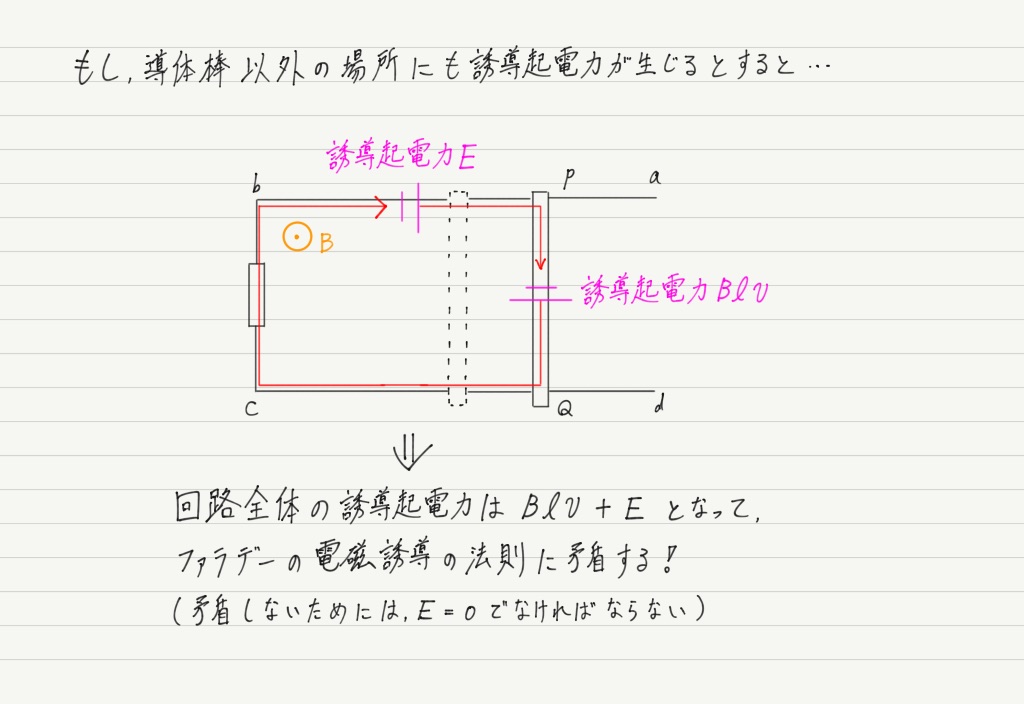 無事に「誘導起電力は導体棒にのみ発生する」ことが示されたので,これで安心して眠ることができます( ˘ω˘)スヤァ